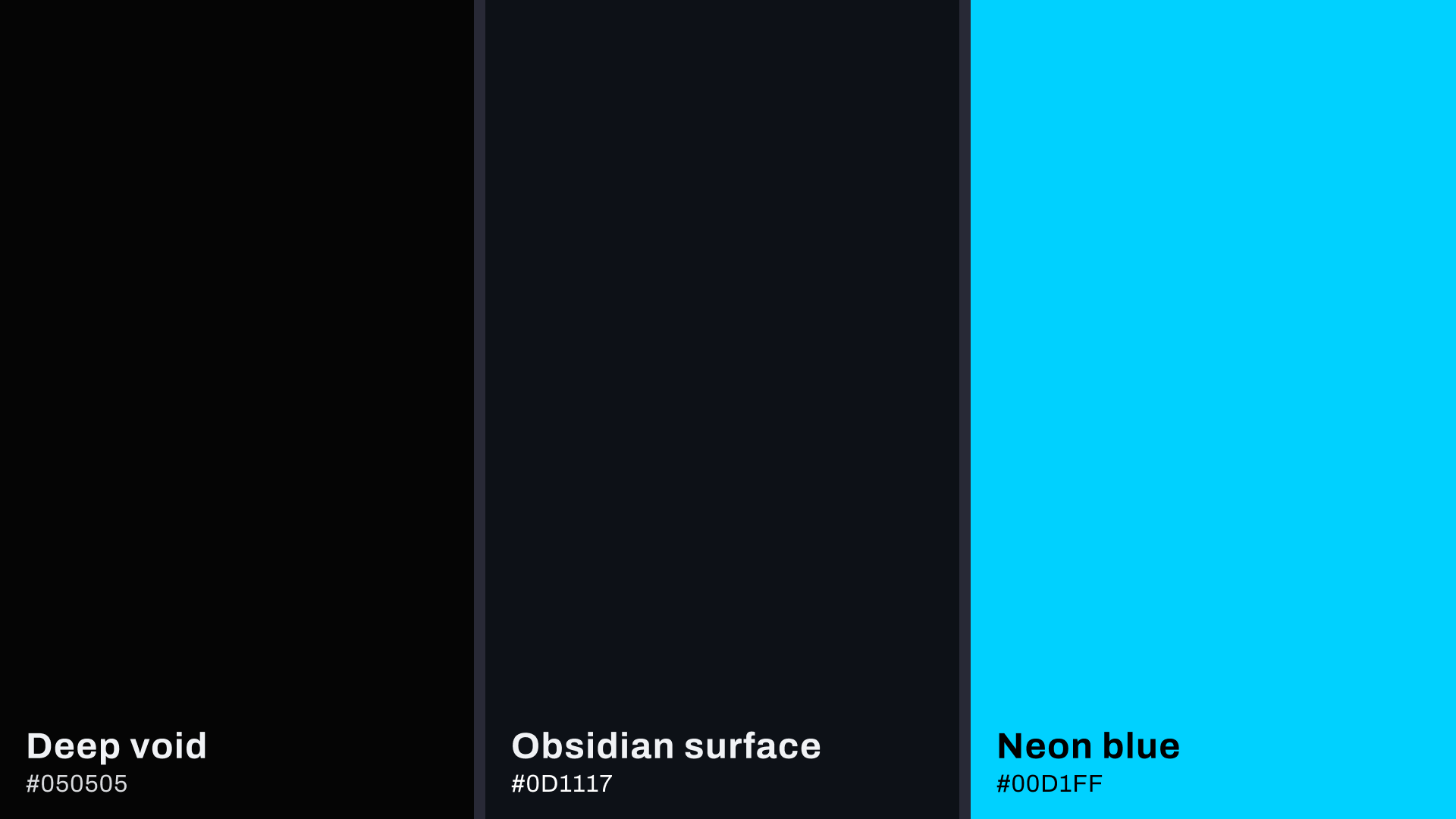 Deep void: the primary atmospheric foundation. A near-black navy that eliminates visual noise and anchors the brand.